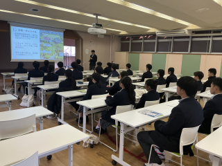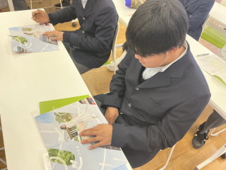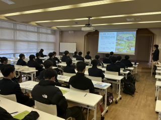 一方で、担い手不足や耕作放棄地の増加、有害鳥獣被害など、現代の農業が抱える課題についても具体的に学び、生徒たちは農業の厳しさと重要性を実感しました。 講座の後半では、農業法人の取り組みやICTを活用したスマート農業の事例も紹介され、未来の農業への希望と可能性も感じられました。