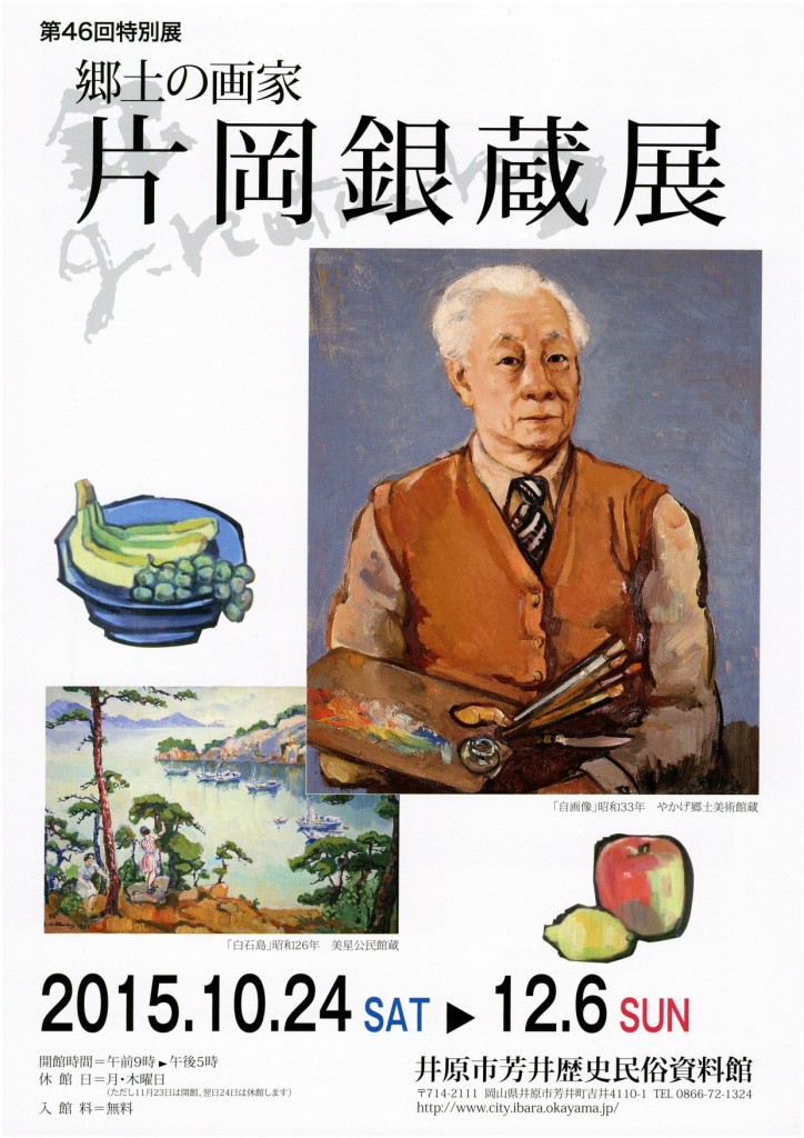 矢掛高校同窓生である片岡蔵氏の特別展が「第46回特別展 郷土の画家 片岡銀蔵展」として井原市芳井歴史民俗資料館で10月24日(土)から12月6日(日)まで開催されます。本校所蔵の作品も貸し出します。