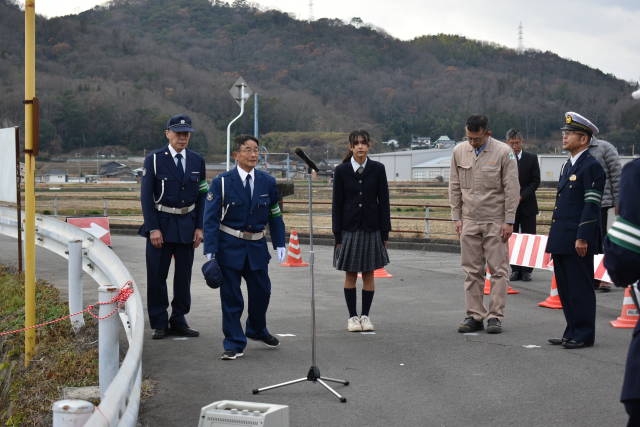 矢掛町小田の県道交差点に設置した看板の除幕式が行われました。これは井原交通警察協助委員会からの依頼で、減速を促す啓発看板のデザイン担当をメディアアート部3年生、マイア・ルアナさんが担当しました。平野鐵工所の協力により、縦1.5メートル、横2.4メートルの大きさのプラスチック製の看板が塀に取り付けられました。この看板が地域の安全運転を促進し、交通事故の減少につながることを願っています。