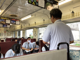総合コース2年生は、公民教科の学校設定科目「地域研究」の一環として、井原鉄道へ職場見学に行きました。生徒たちは井原線を利用して井原駅へ向かい、そのまま列車に乗って車庫まで行きました。列車内では鉄道の運営に関する説明を受け、今年の7月1日から運転手として活躍している矢掛高校総合コースの卒業生も参加しました。先輩運転手は、自身の経験から、運転手としての仕事の困難やそのやりがいについて話をしてくれました。