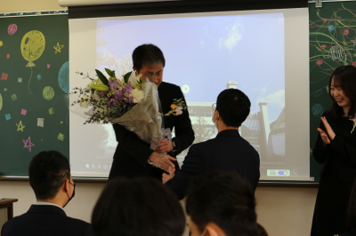 担任の先生から、一人ひとりに卒業証書が手渡され、クラス全員から温かい拍手が送られました。ホームルームでは、担任の先生から卒業生への言葉が伝えられ、これまで支え合ってきたクラスメイトへの感謝の言葉や、それぞれの新たな目標が語られる場面もありました。