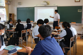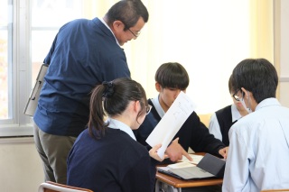 探究コース1年生の数学Aにて、公開授業が行われました。今回の授業では「図形の性質」をテーマに、円に内接する四角形について、円周角の定理やその逆を活用して論理的に証明する活動に取り組みました。生徒たちはグループに分かれて課題に挑戦し、互いに説明し合う中で理解を深めていきました。ジグソー法を取り入れた展開により、生徒同士の対話が活発に行われ、論理的思考力や表現力を高める学びとなりました。教職員にとっても、生徒の成長や授業実践を共有する有意義な機会となりました。