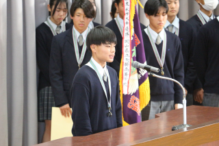選手代表からは「全国大会を見据え、第38回秋季中国地区高等学校軟式野球大会でも全力で挑みます」と力強い決意が語られ、会場からは大きな拍手が送られました。