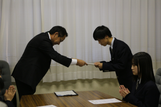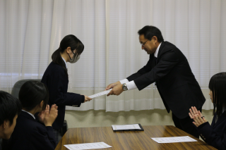 新生徒会本部の発足に伴い、認証式を行いました。任命を受けた生徒会長や役員たちは、全校生徒の代表としての自覚を胸に、新たな一歩を踏み出しました。式では校長先生から「矢掛高校の看板として、品位と責任を持って行動してほしい」との激励の言葉が贈られ、生徒たちは真剣な表情で耳を傾けていました。これからの学校生活をより良くするために、生徒主体の取組がますます期待されます。