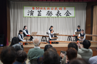 矢掛公民館祭に箏曲部が出演し、来場された地域の皆さんに向けて演奏を披露しました。箏の美しい音色が会場に響き渡り、聴く人の心に優しく届くような演奏となりました。部員たちは、日頃の練習の成果を地域の方々に直接届けられたことに喜びを感じている様子でした。地域とのつながりを実感できる、あたたかなステージになりました。