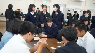 岡山県ユネスコスクール実践交流会に、本校生徒が参加しました。今年度のテーマも昨年に続き「食×ESD」。矢掛高校の生徒は、昨年発表したカードゲームを改良し、「ナニニナルンジャ⁉」と「Problem Solver」の2種類を使ったワークショップを行いました。参加者はカードを使って、食の課題や廃棄食材の活用法を楽しく考え、活発な対話が生まれました。ポスターセッションやワークショップを通じて、生徒たちは人に伝える難しさや楽しさを実感し、ESDの学びを深める一日となりました。