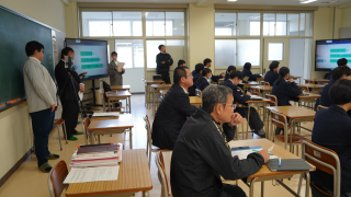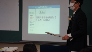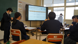 校内研修の一環として、情報処理の公開授業が行われていました。この授業は、指導教諭による公開授業として県下の教員にも公開されており、校外からの参観も受け入れる形で実施されました。テーマは「情報モラルと情報セキュリティ」。グループごとにテーマを設定し、スライド資料を作成してプレゼンテーションを行う活動が展開されました。情報の伝え方やデザインの工夫、信頼性や著作権に関する意識も取り入れながら、実生活と結びつけて主体的に学ぶ姿が見られました。