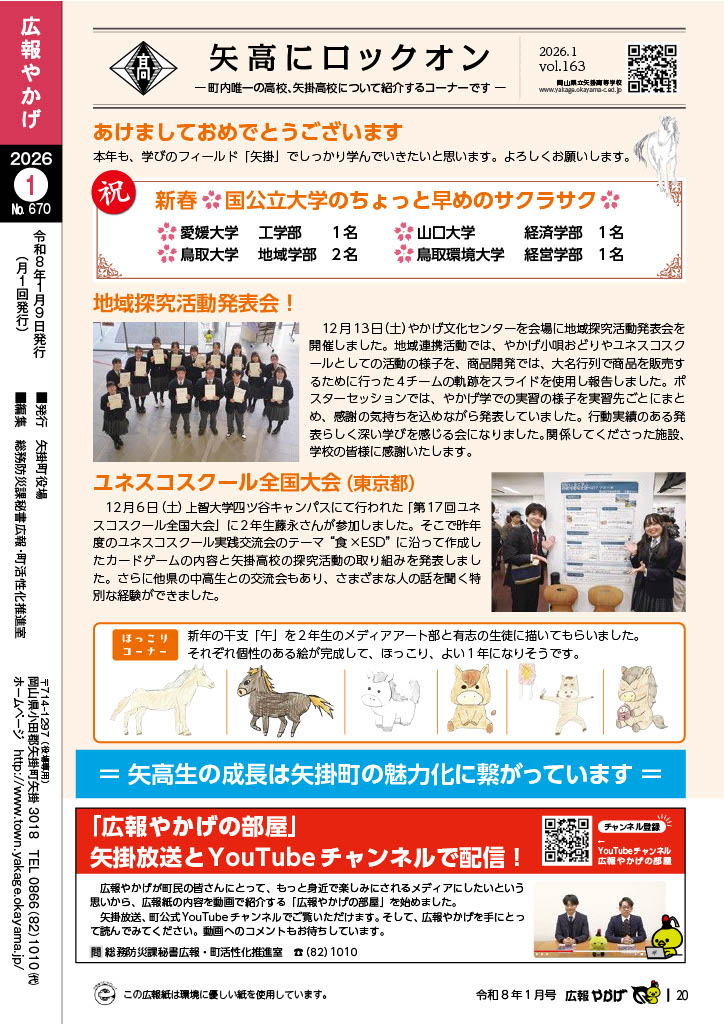 『広報やかげ』2026年1月号に、矢掛高校の生徒たちが登場しました。