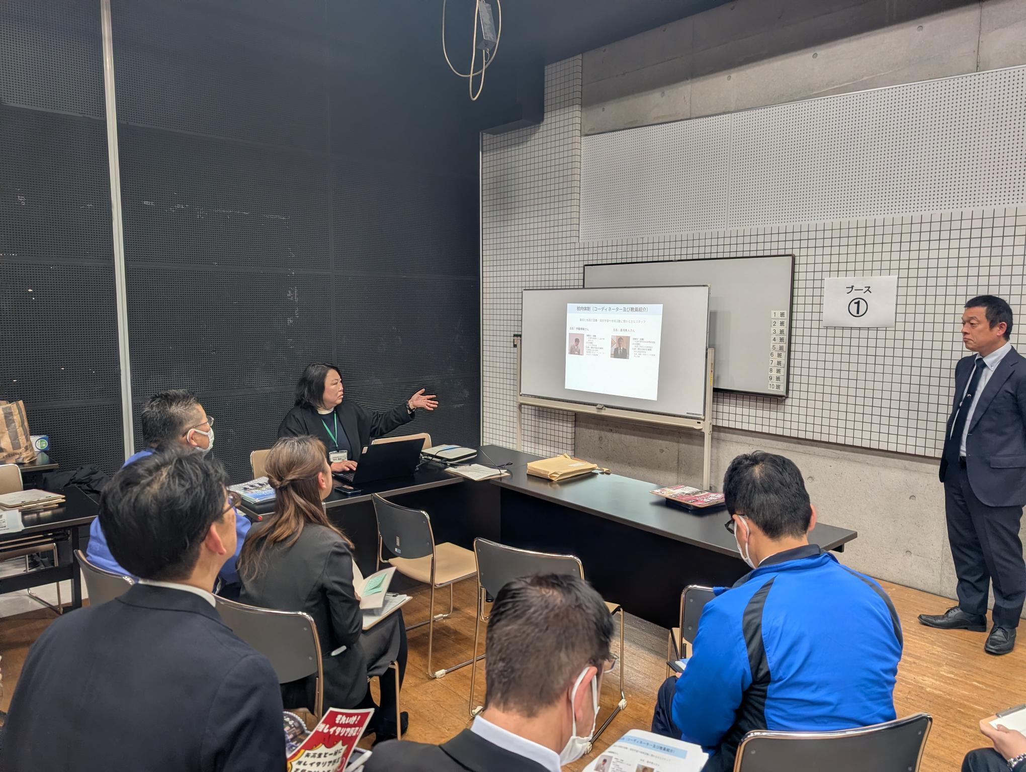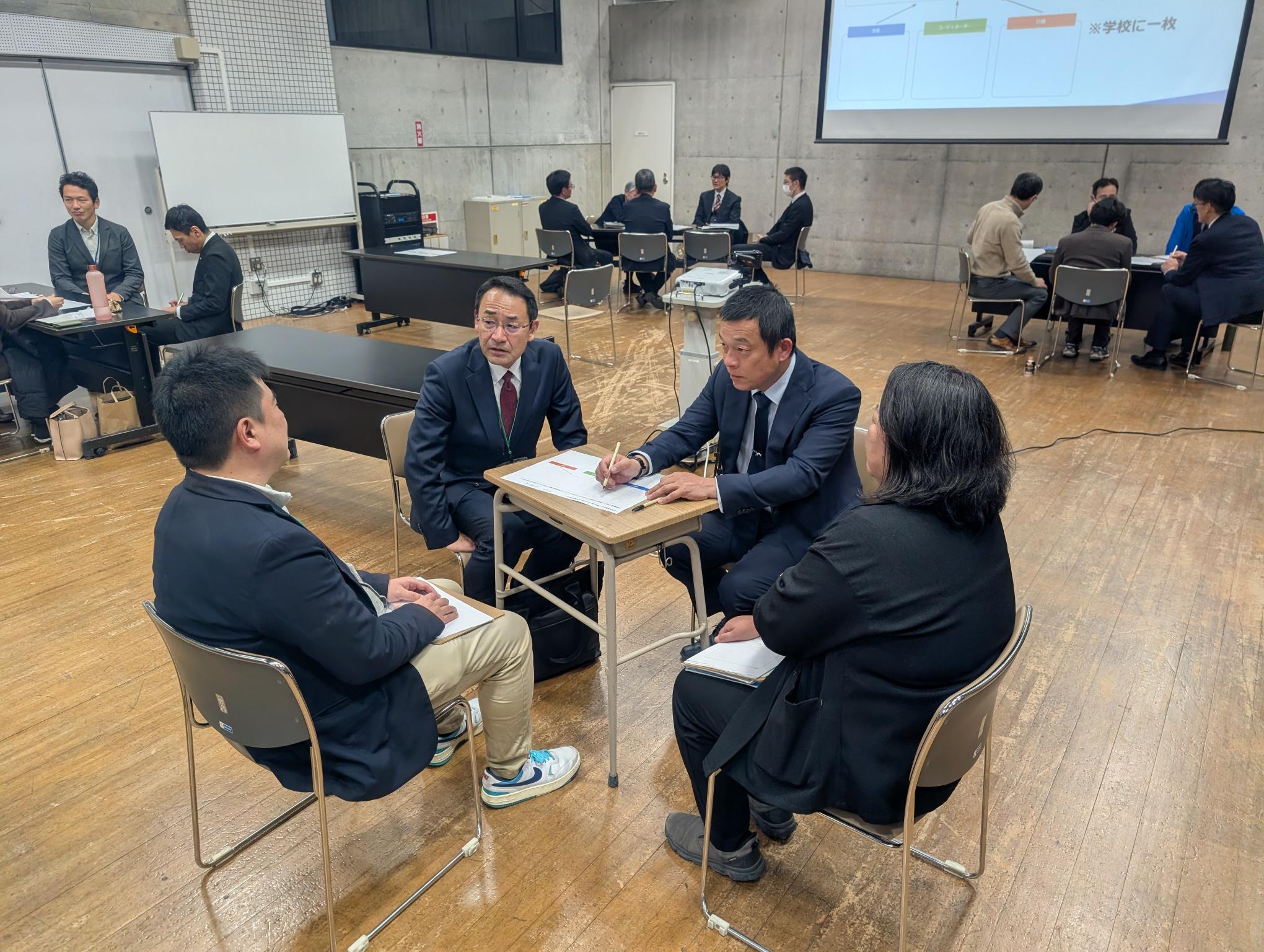 前半のパネルディスカッションでは、町職員とともに登壇し、行政と学校がどのように協働体制を築いてきたかを語り合いました。後半のブースセッションでは、高校コーディネーターが、やかげ学や探究活動、生徒募集や広報など、地域と連携した1年間の取組を発表。他校の実践も聞きながら、協働の可能性を深める有意義な場となりました。