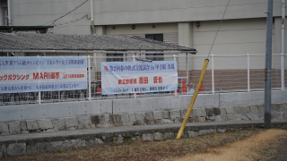 春の「軟式交流試合 in 甲子園」に西日本選抜として出場する、軟式野球部の2年生を応援する横断幕が、西門フェンスに掲げられました。