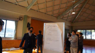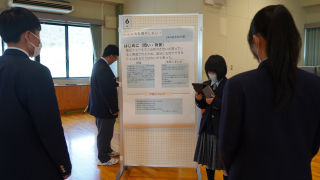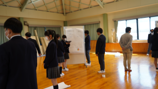 来週行われる探究活動の発表会に向けて、2年生探究コースがポスターセッションの発表練習を行いました。