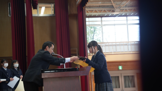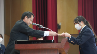 各種大会や活動において成果を収めた生徒が表彰され、順に賞状が手渡されました。