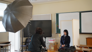クラス写真と学生証用の証明写真の撮影を行いました。整列や誘導のもと、学級ごとの集合写真を撮影した後、一人ひとり順番に証明写真の撮影を進めました。撮影では姿勢や表情、身だしなみの確認が丁寧に行われ、「もう1枚いきます」と声をかけながら、その場で微調整を重ねていきました。
