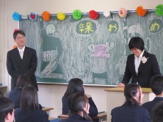 蛍の光、校歌を高らかに歌い、感動のうちに終了。その後は各HRで最後のHRを行いました。