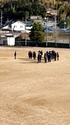 いいお天気なのに風がとても冷たい一日になりました。2年生「科学と人間生活」の授業。運動場で地面に描いてる白線の円を見ながら、なにやら説明してました。「海王星があのあたりで・・・」太陽系の惑星間の距離を説明されていました。