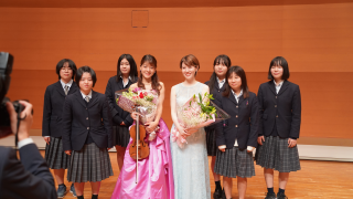 やかげ文化センターで開催された「廣津留すみれヴァイオリン・リサイタル」にて、本校生徒がボランティアとして参加しました。受付やパンフレット配布、来場者の案内などを通して、地域文化を支える一員としての役割を果たしました。丁寧な対応と笑顔が来場者にも好評で、生徒たちにとっても実践的な学びと自信につながる貴重な機会となりました。