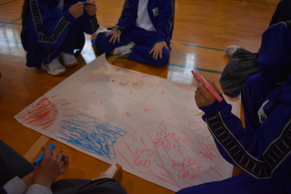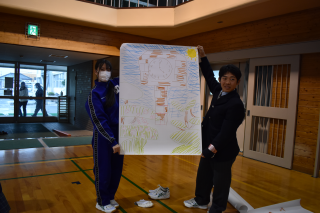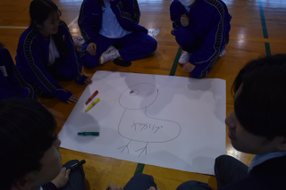 続いて「みんなでお絵描き」を行いました。短い打ち合わせのあと、条件を変えながら全員で一つの絵を完成させました。限られた時間の中で、役割分担や意見の出し方に工夫が生まれていました。